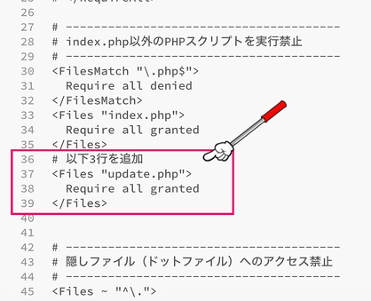 a-blog cms Ver3.2へのアップデート中に遭遇した403エラーの対処方法 a-blog cms Ver3.1.55からVer3.2にアップデートしようと思って、ダウンロードしたupdate.phpをサーバーにアップロードして、upate.phpを実行すると、403エラーが表示されました。 それで、readmeテキストの指示に従い、ドットhtaccsessファイルに 以下の3行を追加したら、無事にアップデートできました。 <Files "update.php"> Require all granted </Files> 投稿:2025年9月17日 いいね!