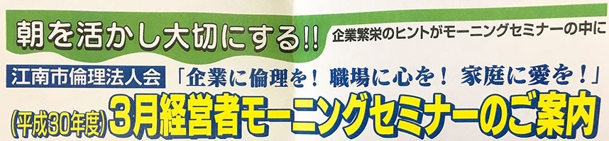今朝、江南市倫理法人会モーニングセミナーに参加。