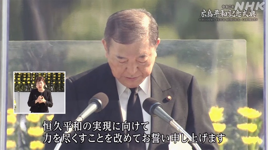 今朝、平和記念公園で開かれた平和記念式典で、石破茂首相が挨拶。