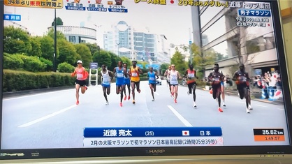 男子マラソンでは、2時間3分の記録を持つゲティッチ選手が24キロ過ぎで急失速、2時間2分の記録を持つ優勝候補のゲレタ選手も残り5キロで棄権。39キロ地点では、エチオピア勢もケニア勢の選手は誰もいなかった。その地点で近藤亮太選手は先頭集団から少し離れて10位を力走していたが、テレビ中継で解説を務めた青山学院大学・原晋監督は、「10位であっても集団が崩れたとき、やめる選手がでてきますから、辛抱して欲しいですね。」と近藤選手に期待を寄せた。