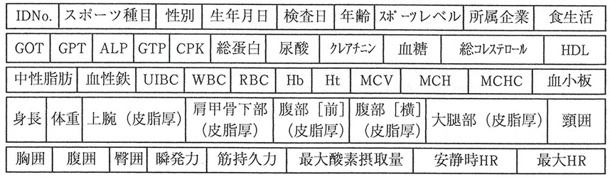 スポーツ選手の種目別血液の参考値表を作成するには、まず相当数の血液データが必要である。