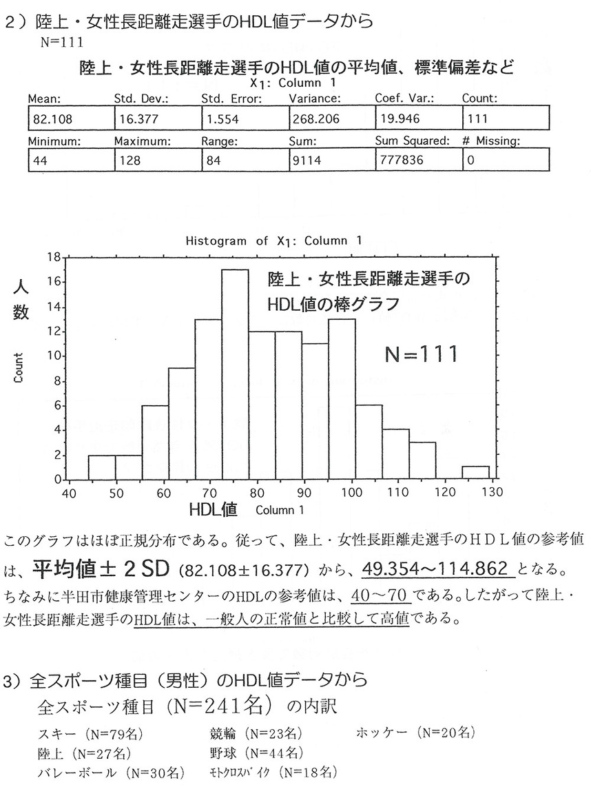 そこで、今後引き続きデータをコンピュータに入力し、将来スポーツ種目別の血液検査項目の参考値表を完成したい。