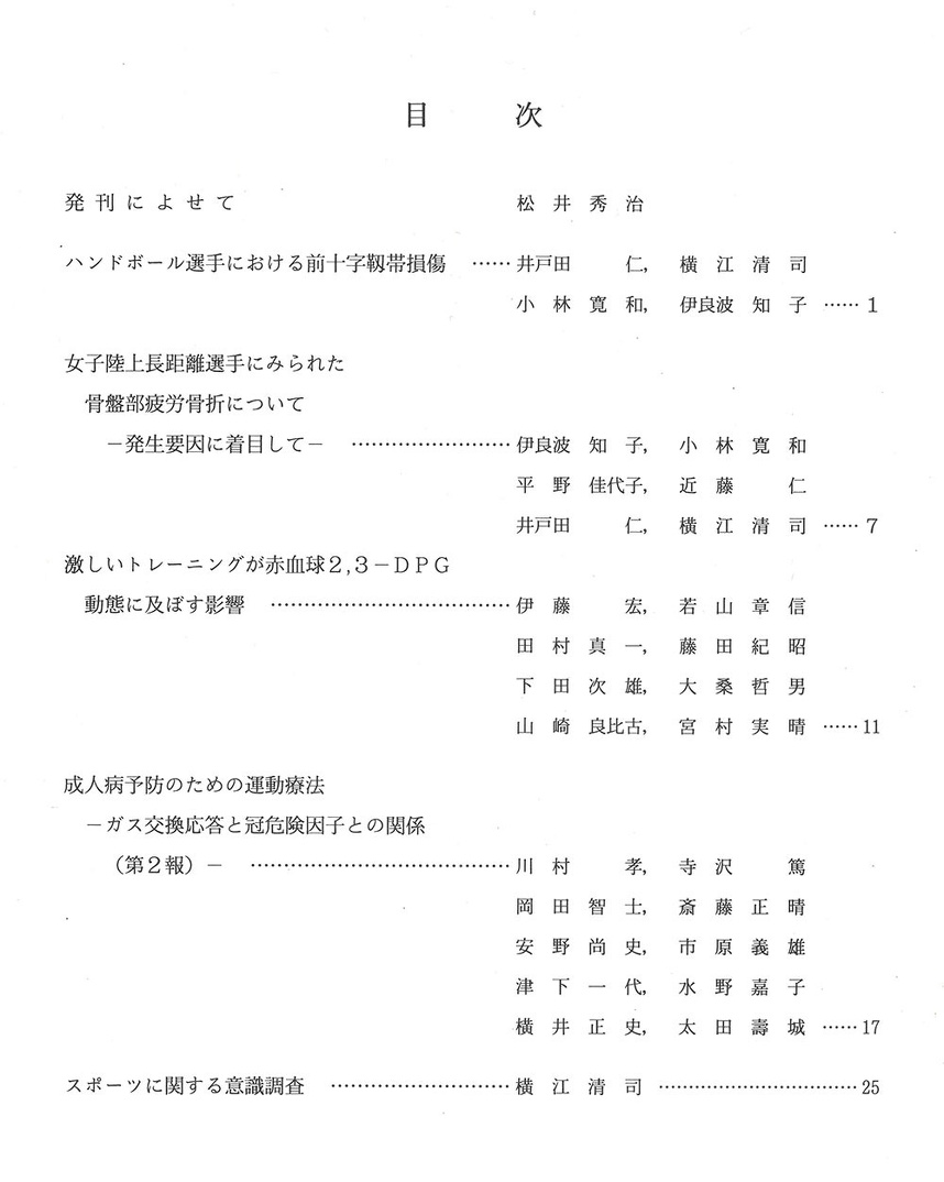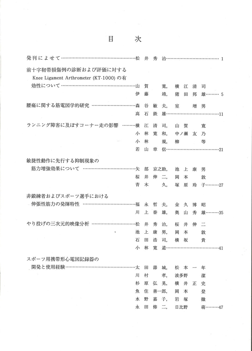 以上、各論文の要点を紹介しましたが、本研究所における研究はスポーツ現場の問題解決への基礎的, 応用的資料の提供を目標としていることを重ねて申し上げ第3巻第1号の発刊の言葉とします。
