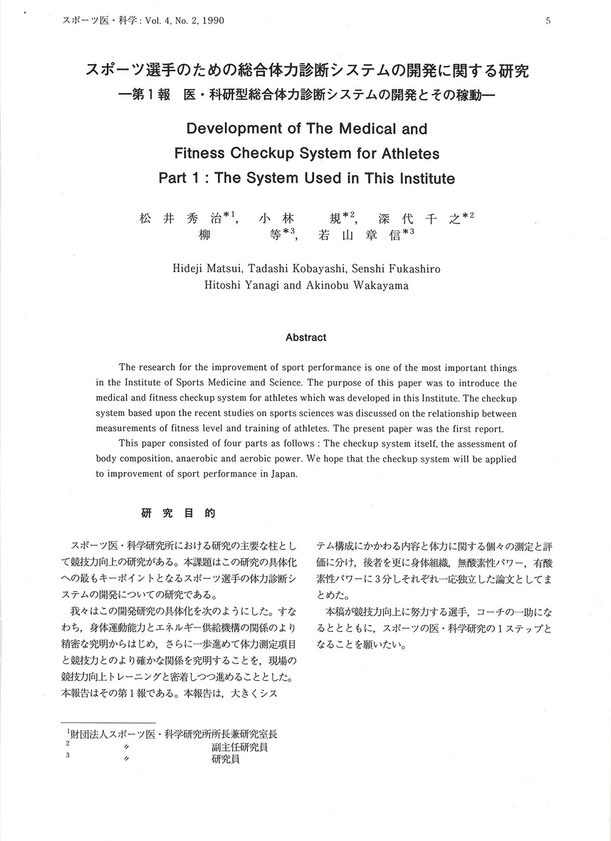 旧 財団法人スポーツ医・科学研究所のJournal「スポーツ医・科学」第4巻 No.2