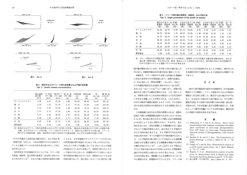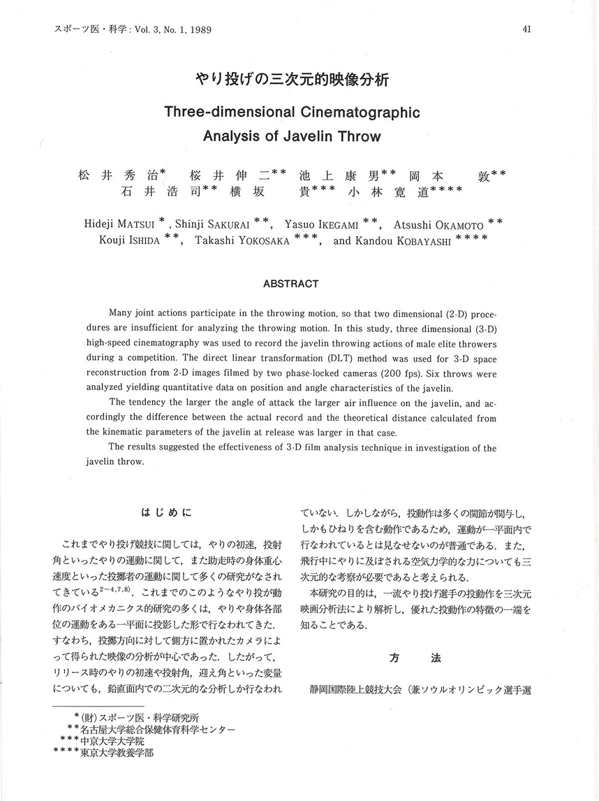 松井は名古屋大学グループの支援を得てやり投における新しい型の投技術について三次元的分析からの究明を報告しています。