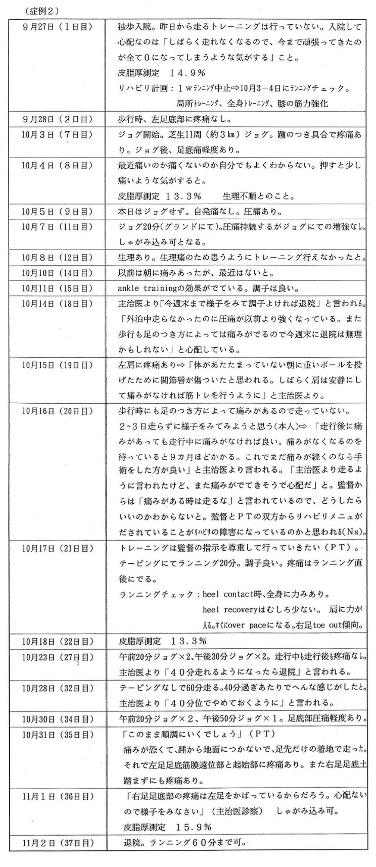 従って〈症例1〉では入院26日目までジョグを許可されなかった。