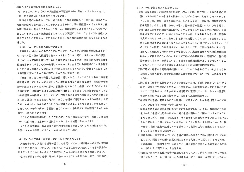 入院患者が皆、素直に看護婦の言うことを聞いてくれれば問題ないのだが、 実際にはそういうわけにもいかない。 今後 (A) のような患者が入院してくるとも限らない。