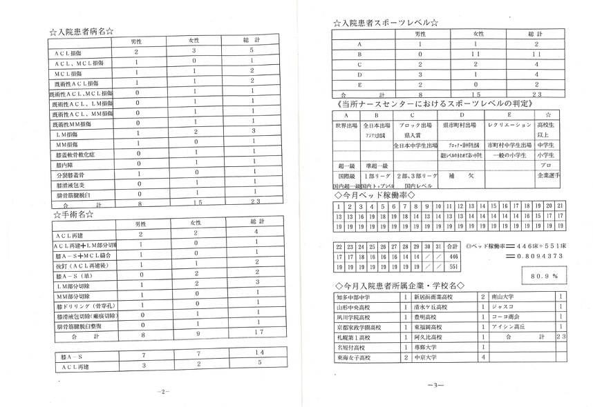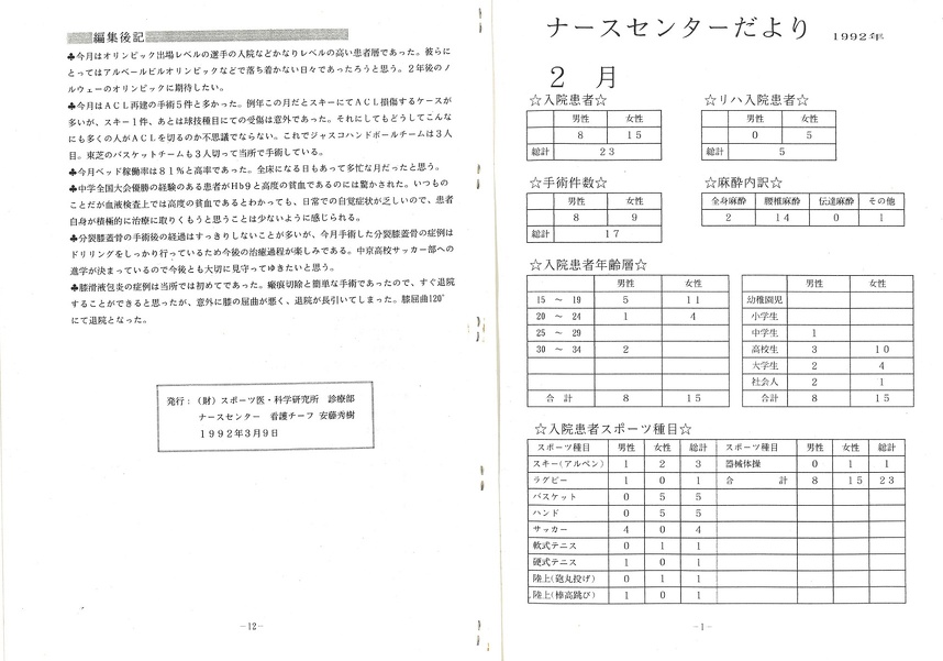 ● 今月はオリンピック出場レベルの選手の入院などかなりレベルの高い患者層であった。 彼らにとってはアルベールビルオリンピックで落ち着かない日々であったろうと思う。 2年後のノルウェーのオリンピックに期待したい。