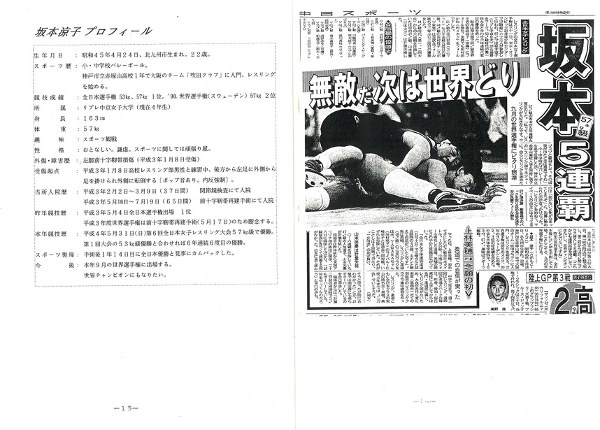 ● 当所でACL再建手術を受けた坂本涼子さんが5月31日のレスリング全日本選手権大会で優勝しました。 9月に行われる世界選手権での活躍を期待します。
