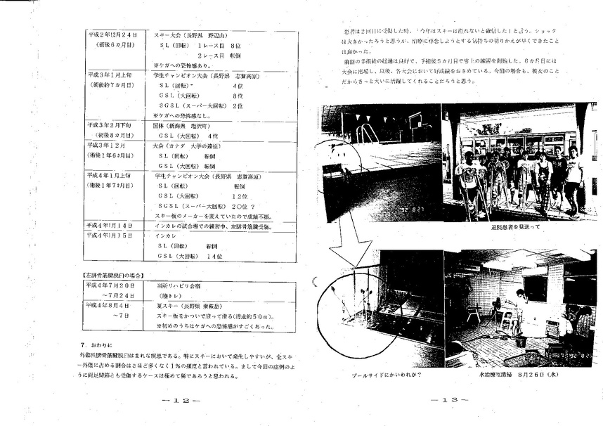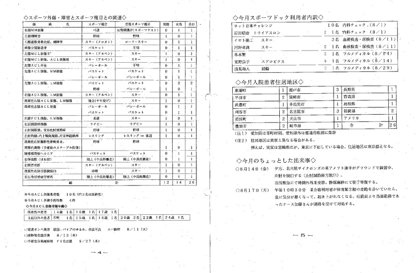 ● 病棟が満床で当所を退院し、合宿所に移動していただいた3人の患者が、全員とも舟状骨疲労骨折であったのは偶然でした。彼女ら3人は同じ部屋で仲良く過ごしていたようです。