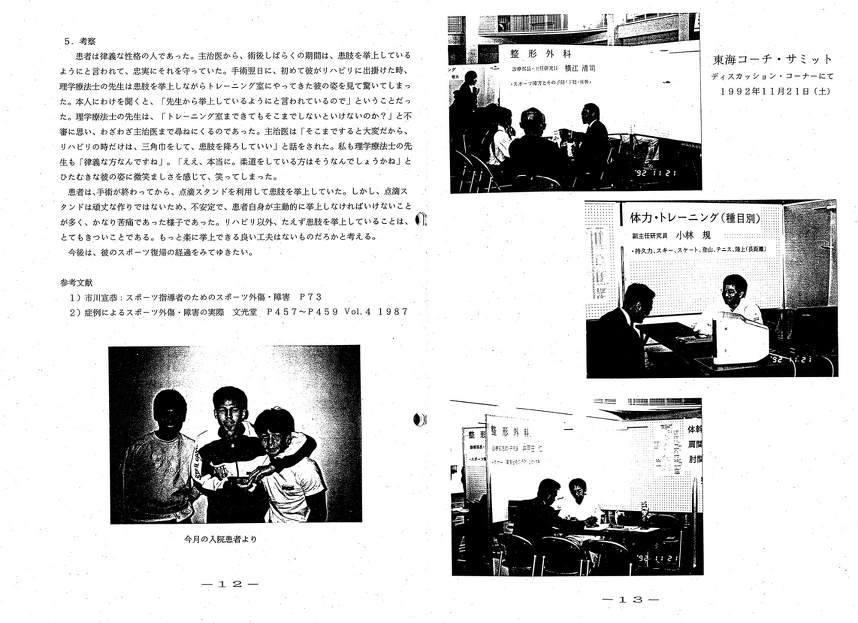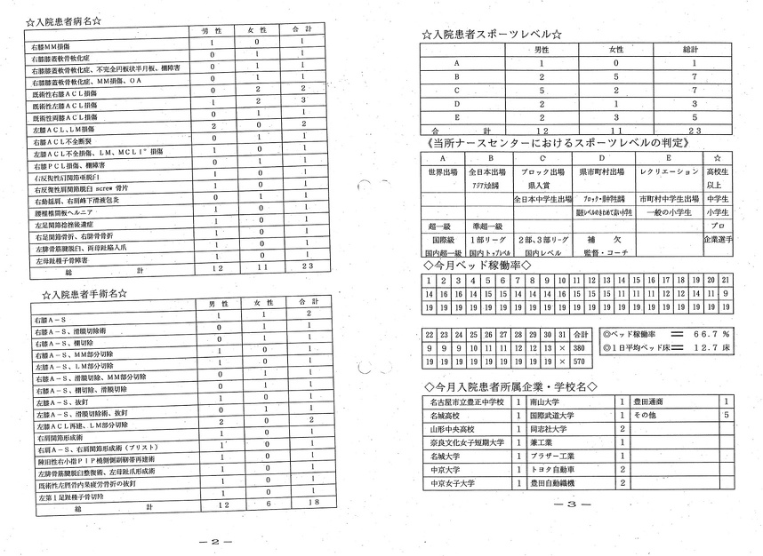● 毎週金曜日に看護婦同志で学習会を開くことにしました。今のところ、私がメンバーに課題を投げかけて行っています。しかしメンバーにも取り組みたい課題があるようなので、彼女らの自主性が生かせる学習会にしたいと考えています。先日の種子骨の学習会では、手術後のかかと歩行は大変負担のかかる歩行なので、つま先(種子骨創部)の安静が保たれ、なおかつ楽に歩行できる履き物はないだろうかといろいろ考えさせてくれました。幸いメンバーが開発してくれるそうなので、どんな履き物ができてくるのか楽しみです。学習会は新しい発見をする良い機会であることを知りました。学習会は業務の都合で時間内にできないこともありますが、何とか継続していきたいと思います。