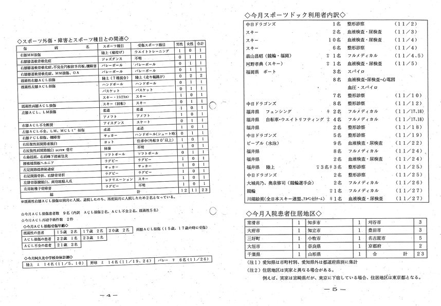 ● 診察に訪れていた選手が、急きょ手術することが決まって、当日に術前検査をすることがあります。そんな時は、手術室・中材室で仕事をしている看護婦を呼んで、手伝ってもらうことがあります。