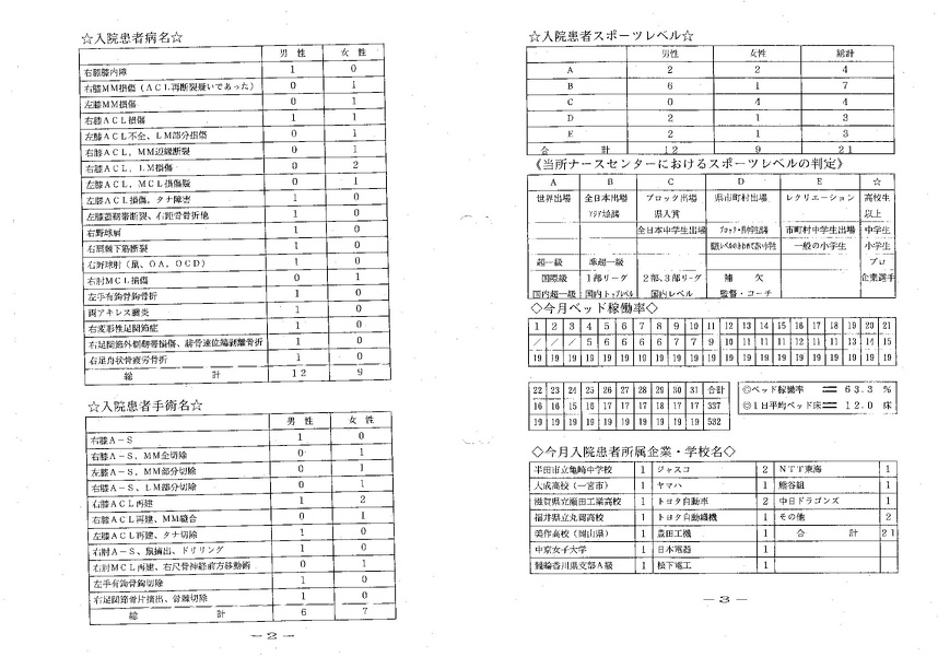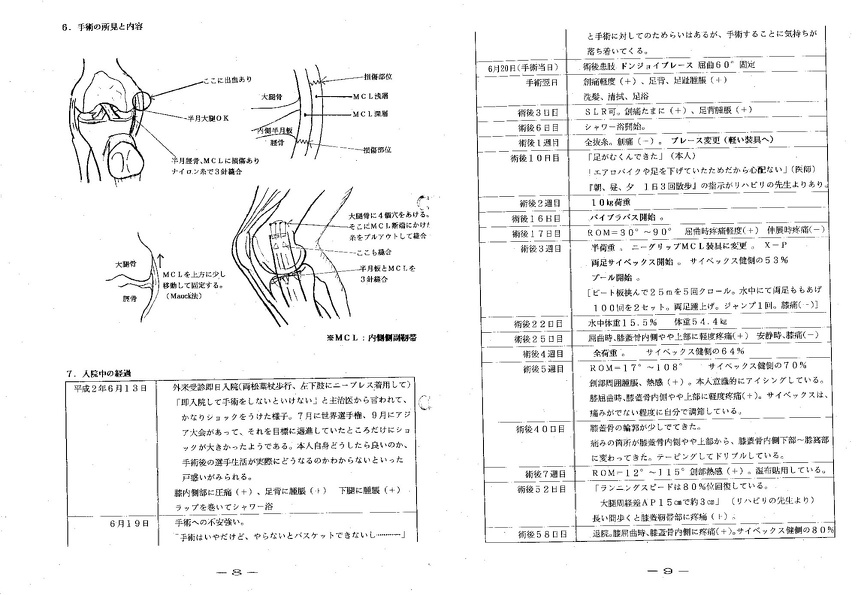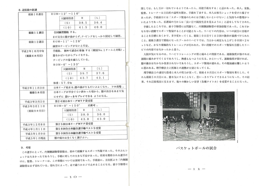 ● 当所で2年前に前十字靱帯の再建手術を受けたバスケットボールの選手が、同靱帯を再断裂したということで当所に入院してきました。関節鏡検査の結果、内側半月板損傷で同靱帯は幸いにも再断裂していませんでした。「切れていませんように」とお守りを手に持って手術室に入ってきた彼女の顔が忘れられません。