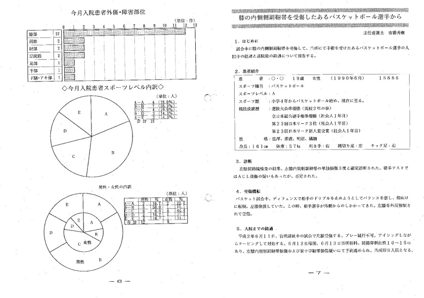 ● 交通事故で入院してきた競輪の選手がいます。靱帯を損傷していたり、骨折していたりとかなりきびしい状況にありますが、ご本人はスポーツ復帰に向けて意欲満々です。