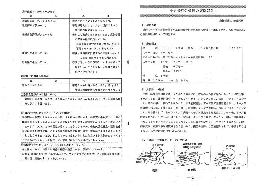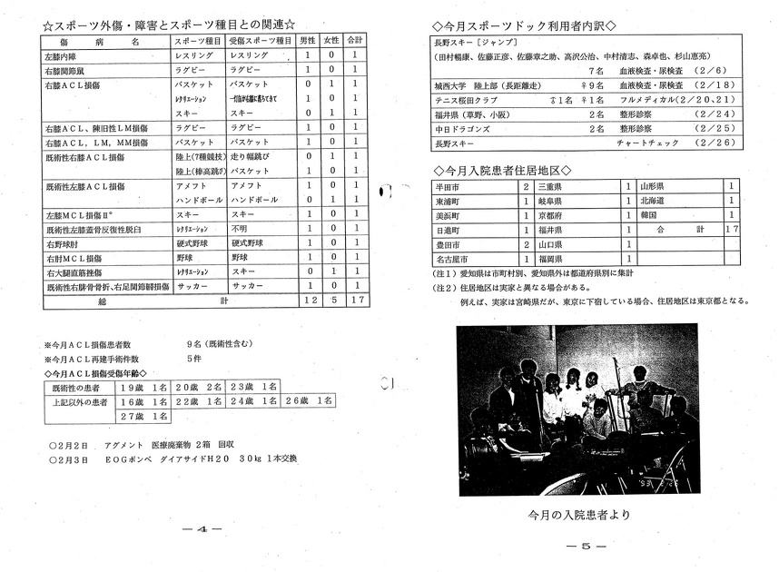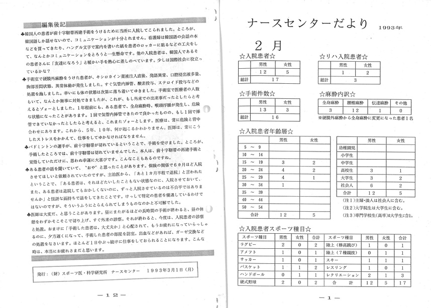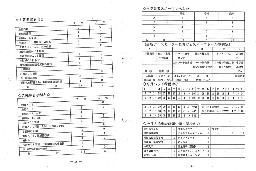 ● 韓国人の選手が前十字靭帯再建手術を受けるために当所に入院しましたが、韓国語しか話せないので、コミュニケーションが十分とれません。 看護婦は韓国語の会話の本などを買ってきたり、ハングル文字で案内を書いた紙を患者のロッカーに貼るなどの工夫をして、なんとかコミュニケーションをとろうと一生懸命です。
