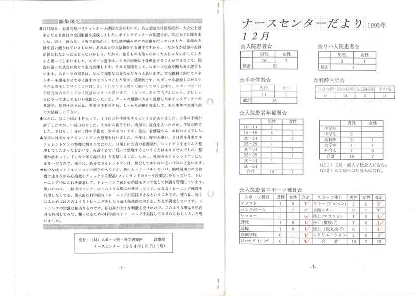 「どうせ、あとで治すんだから、がむしゃらにやって壊してもいい覚悟だった」と、チームの優勝に大きく貢献したポインタゲッターの某選手は、年明け早々に当所で手術です。今度は、しっかり治療に専念して、再度来年の全国大会で大活躍して下さい。
