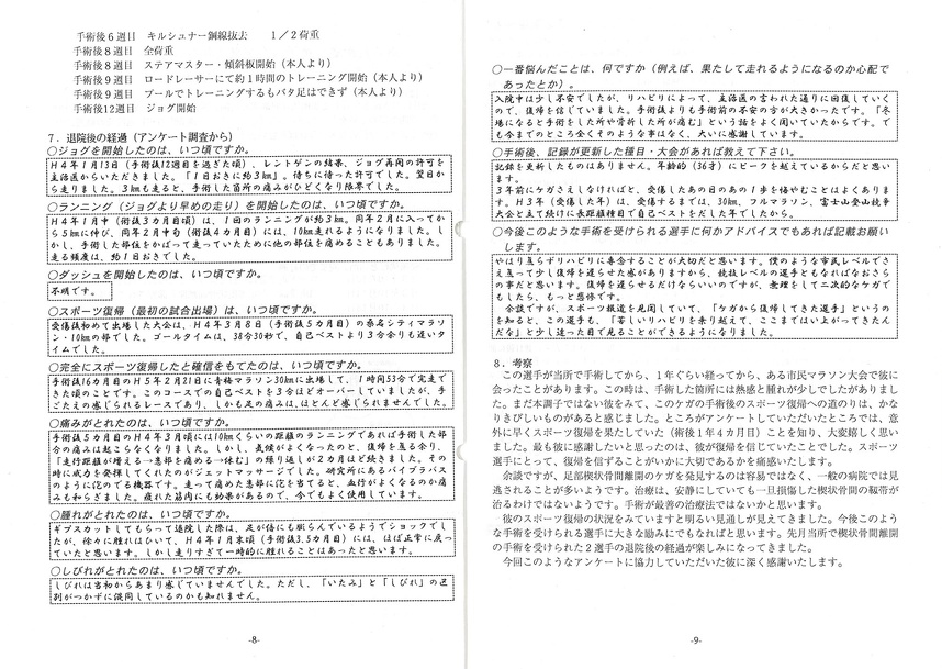 彼女は、大好きな体操競技を諦めましたが、新たな進路を見いだし、その夢に向かって歩んでいます。彼女が受傷した膝のケガは、将来良い経験となって生かされると思います。ぜひ頑張って、立派な理学療法士になって下さい。
