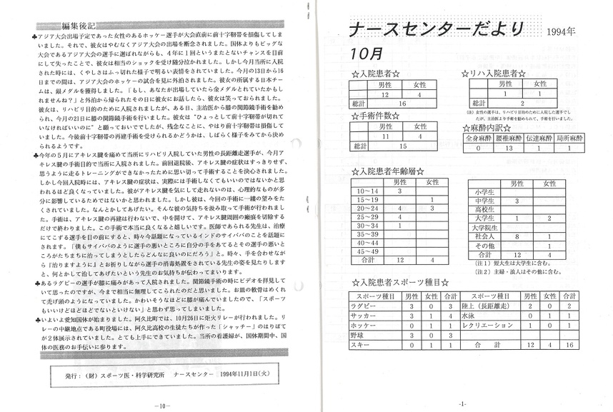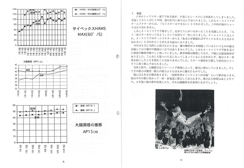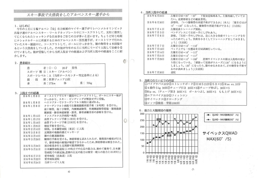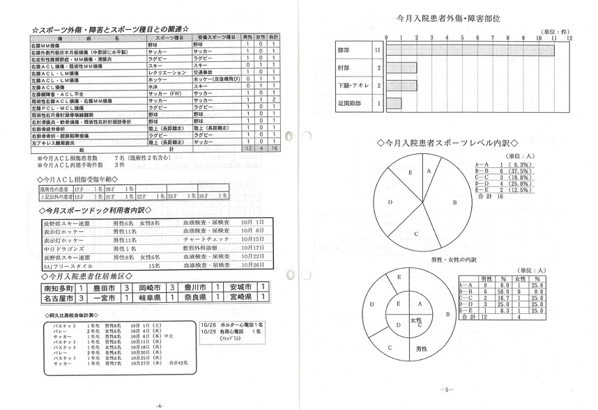 ● アジア大会に出場予定であった女性ホッケー選手が大会直前に前十字靭帯を損傷し、アジア大会出場を断念。 国体よりもビッグな大会であるアジア大会の選手に選ばれながらも、4年に1回というまたとないチャンスを目前にして失ったので、彼女は相当なショックを受けて泣きじゃくりました。しかし今月当所に入院してきた時には、くやしさがふっ切れた様子でとても明るい表情をしていました。今月13日から16 日の間、アジア大会のホッケー試合を観戦に外泊。 彼女の所属する日本チームが銀メダルを獲得したので、 私は、「もしあなたが出場していたら金メダルとれていたかもしれませんね?」と外泊から帰られたその日に彼女にお話したら、彼女は笑っていました。