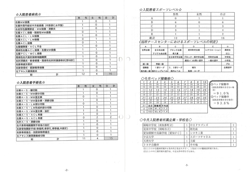 ● 今年5月にアキレス腱を痛めて当所にリハビリ入院していた男性の長距離走選手が、今月アキレス腱の手術目的で当所に入院。
