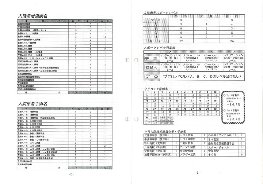 ● 今月18日、プロサッカーの選手が当所に入院してきました。