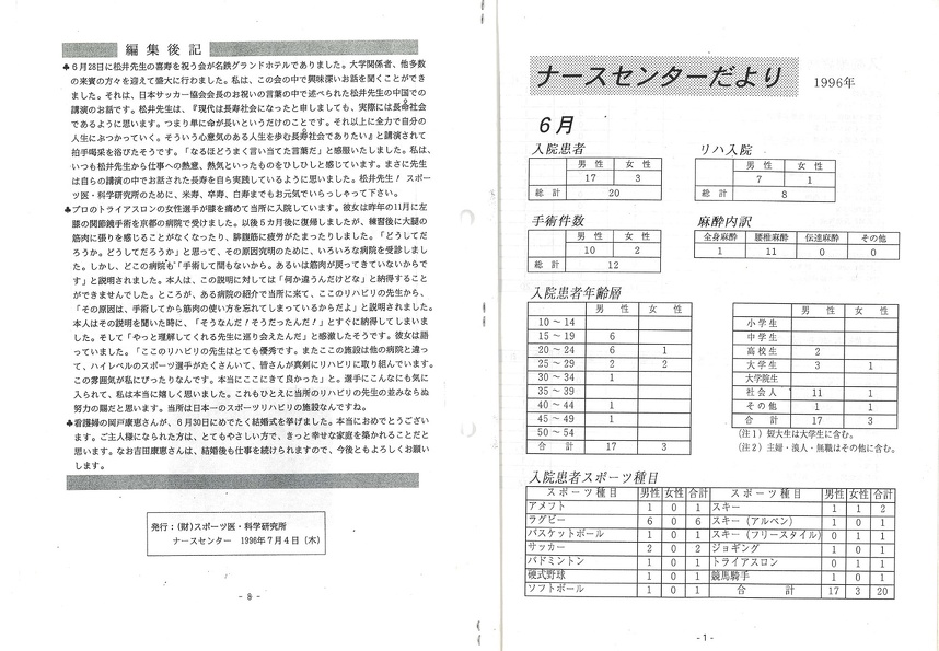 編集後記 1996年6月 松井秀治先生の喜寿を祝う会