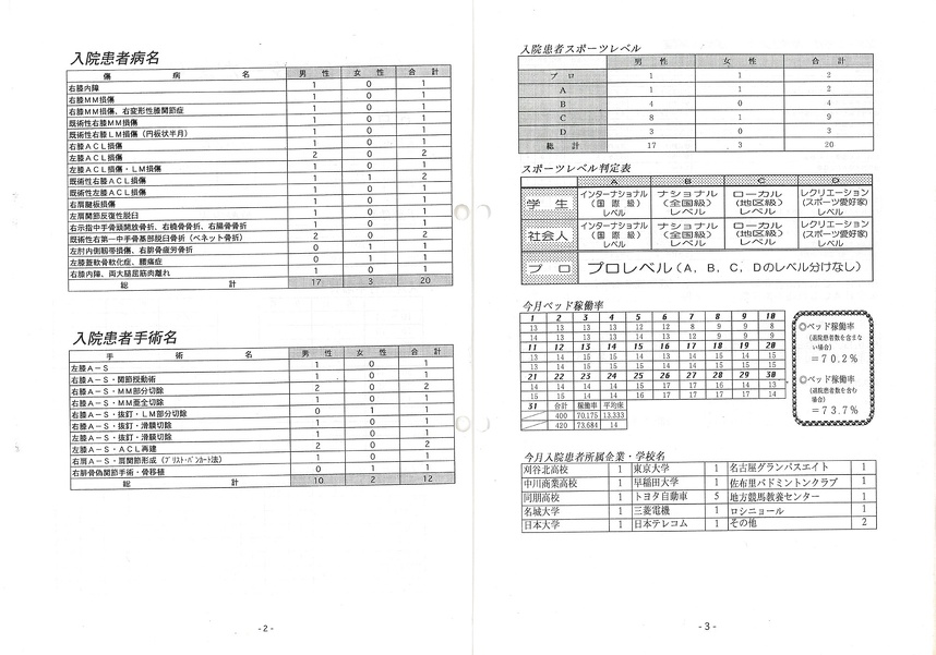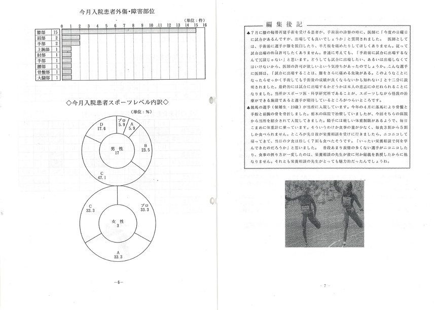 ● プロのトライアスロンの女性選手が膝を痛めて当所に入院してきました。