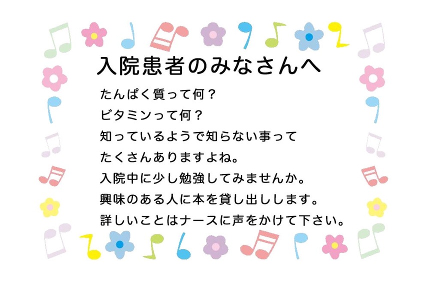 また間宮先生は、『食事の栄養に関する本を貸し出しします』とご案内しました。