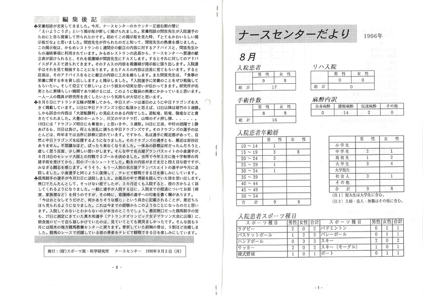 一般に選手が入院する日に、入院までの経過についてお話 (病歴、家族歴など)を伺うのですが、その時に、看護婦の選手への印象を書く欄があります。