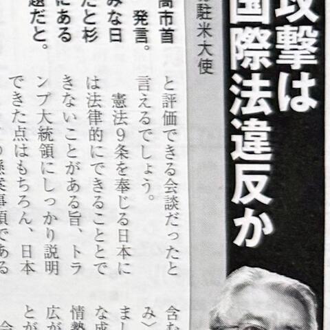 今朝のテレビ番組『日曜報道』にて、3月19日の高市首相とトランプとの会談において「日本は憲法第9条に救われた」という趣...