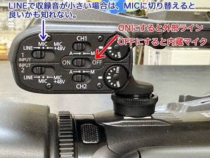 Canon ビデオカメラXA60で外部ライン入力なのに何故か内蔵マイクの音も拾っている