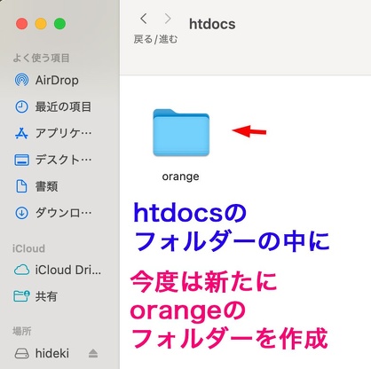 仮にhtdocsのフォルダーの中に例えば「apple」のフォルダーを新規に作成。