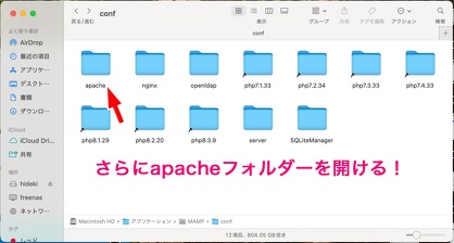 MAMPフォルダーの中のconfフォルダーの中にapacheフォルダーがある。