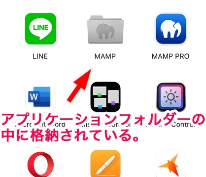 MAMPは自動的にMacパソコンのアプリケーションフォルダーの中に格納されている。