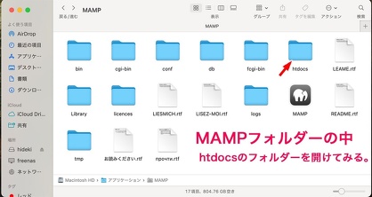 MAMPフォルダーの中にhtdocsのフォルダーがある。