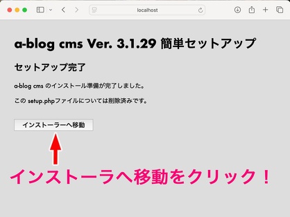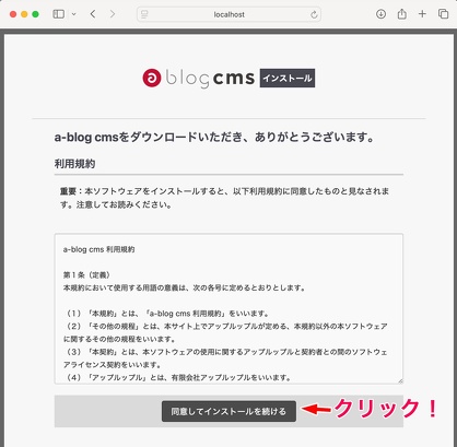 目出たいことに、a-blog cmsがインストールできる画面が出てきた。
