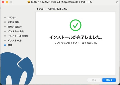 インストールが終わると、「インストールが完了しました」と表示が出てくる。
