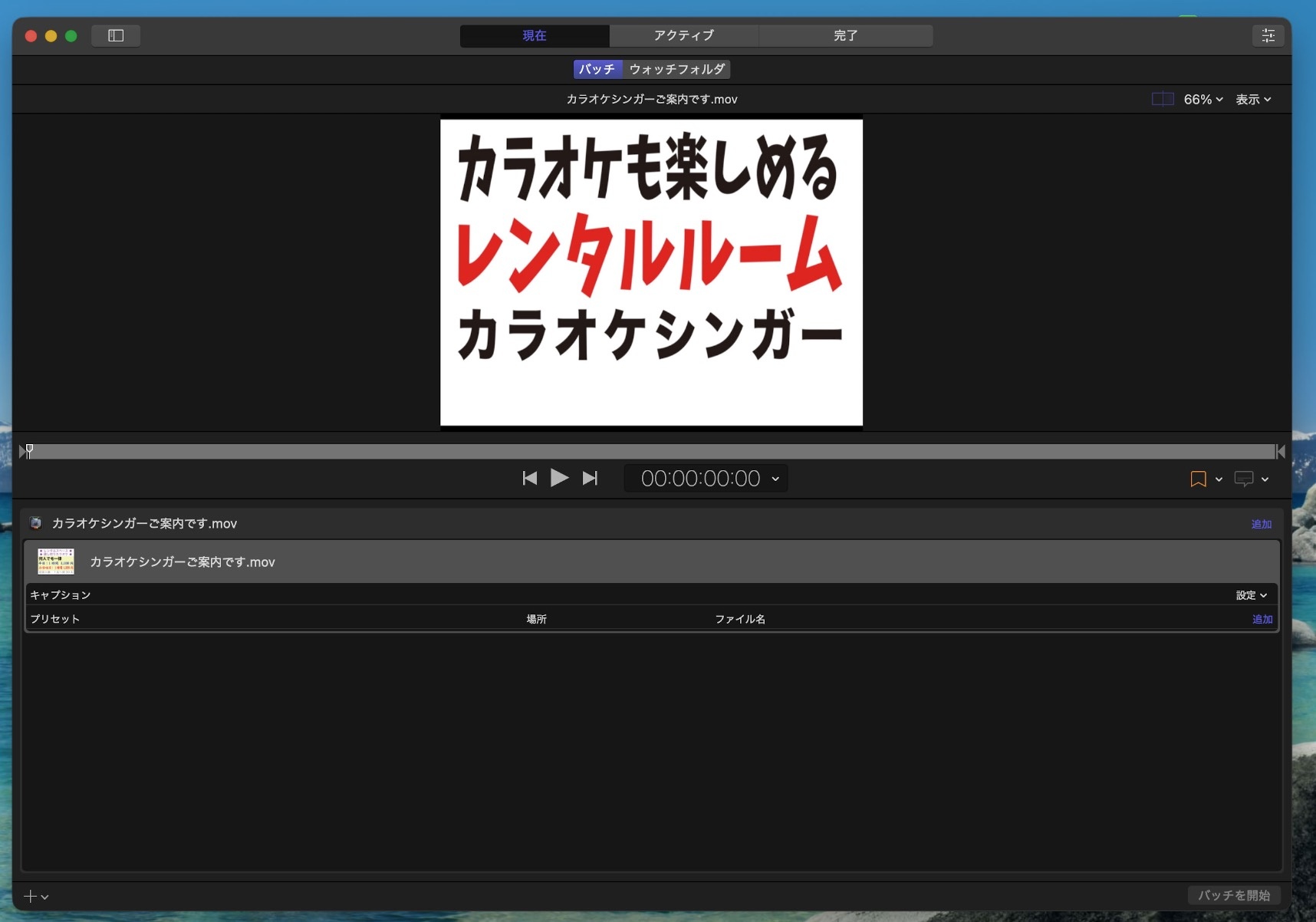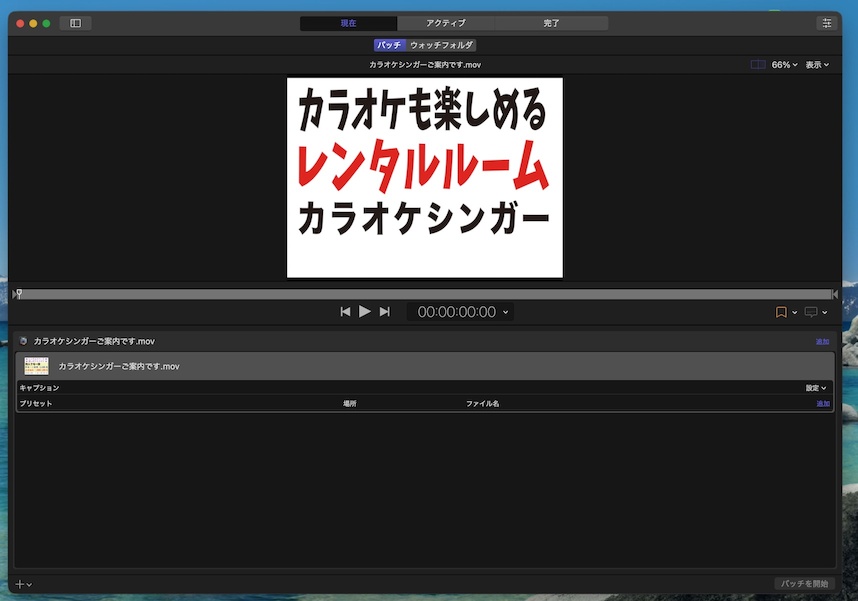 - 手順1で書き出した .mov ファイルを選択して開く。