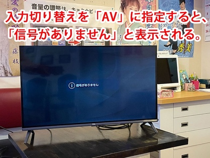 次にカラオケシンガーで、テレビのビデオ入力に市販のミニプラグからRCAに変換するケーブルをつないで、テレビ画面で入力を「AV」に切り替えましたが、「信号がありません」と表示されて困りました。念のため、RCAをHDMIに変換するケーブルをつないでみましたが、同様な表示が出て観ることができません。