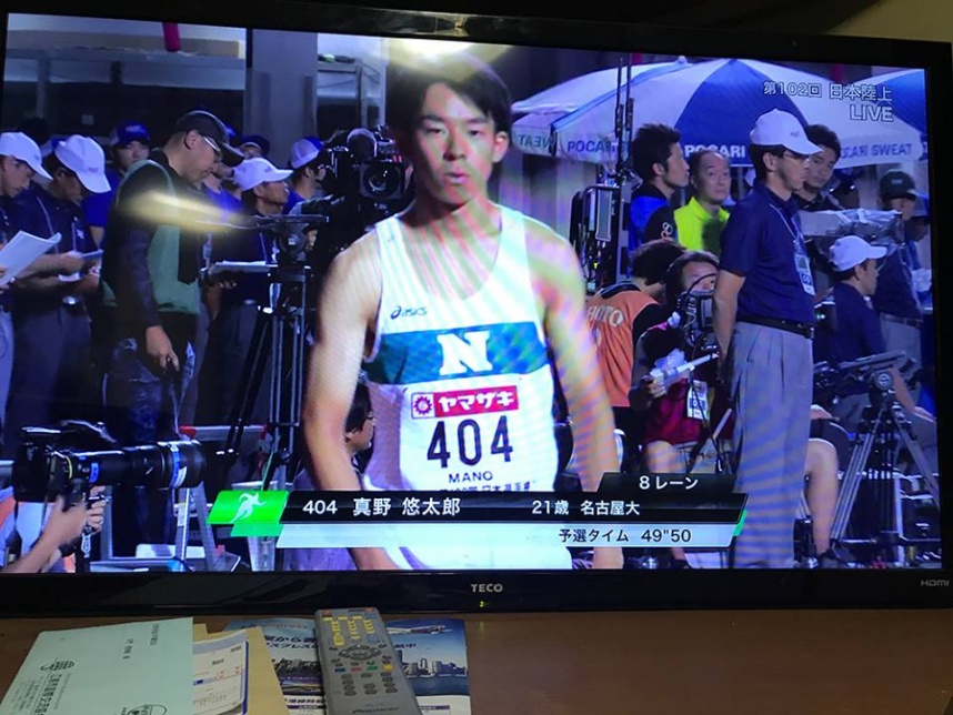 そういえば6月23日の夕食時にテレビのスイッチを入れたら日本陸上競技選手権400mH決勝が行われていて、名古屋大学の真野悠太郎選手が映っていたのを思い出した。でもまさかそのときは真野医院の息子さんだとは全く思わなかった。