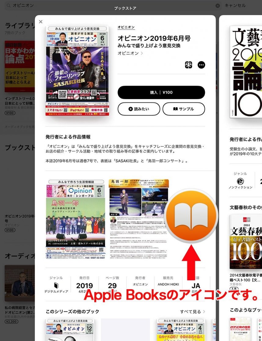 iPhone、iPadで、アップルが提供する電子書籍アプリケーション「Apple Books」で見ることができます。