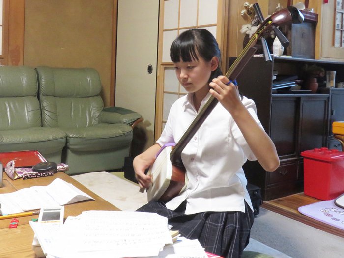 練習は一般家庭で見かけるごく普通のお部屋で行われていて、師匠と三味線の音合わせや唄う声のキーをその都度、調節すると言う念の入れよう。