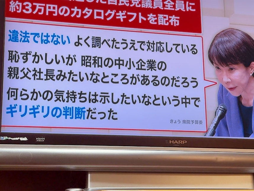 昨日、衆議院予算委員会の国会答弁において、高市早苗首相は「3万円のギフト配布は違法ではない。昭和の中小企業の親父社長みたいなところが私にはあるのだろう」と述べた。