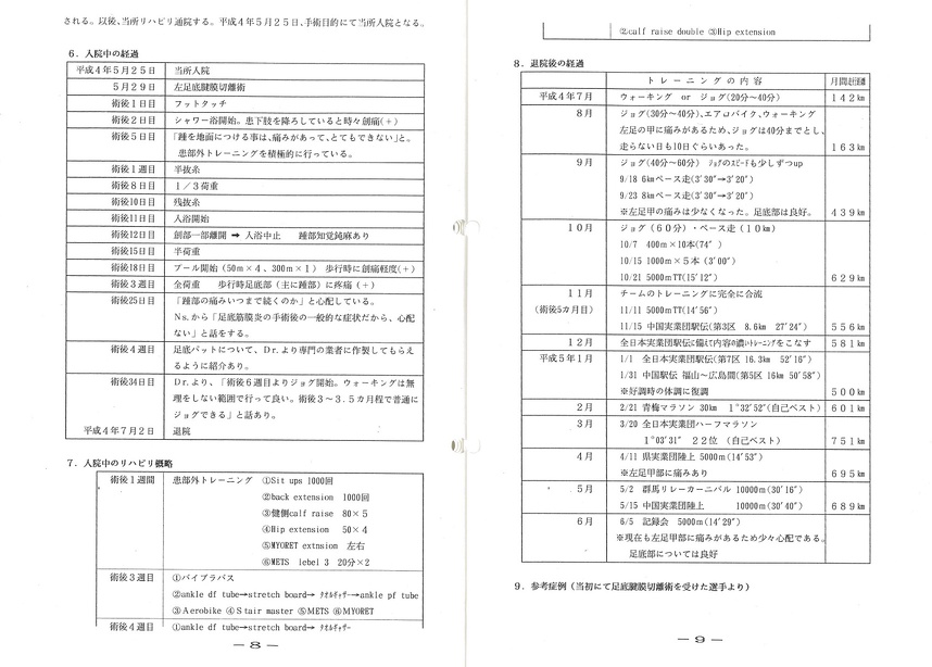 ● 前十字靭帯再建手術を希望していたK選手は、かなり太っていたので、主治医より 入院までにもっとやせないと手術はできない」とハッパをかけられました。ところが、入院前日に受診に訪れたときは、ちっともやせていませんでした。 主治医は、「これでは手術はできない」とためらわれました。でも、K選手が、 “なんとか手術してほしい” という顔つきをするものものですから、やさしい先生は、 「本人の切なる願いをなんとか叶えてあげようか』という気持ちになられて、手術することを承諾するのでした。このようにしてK選手は手術を受けました。でも、手術した膝の靭帯に負担がかからないように、これからもやせないといけないのです。K選手、 頑張って下さい。