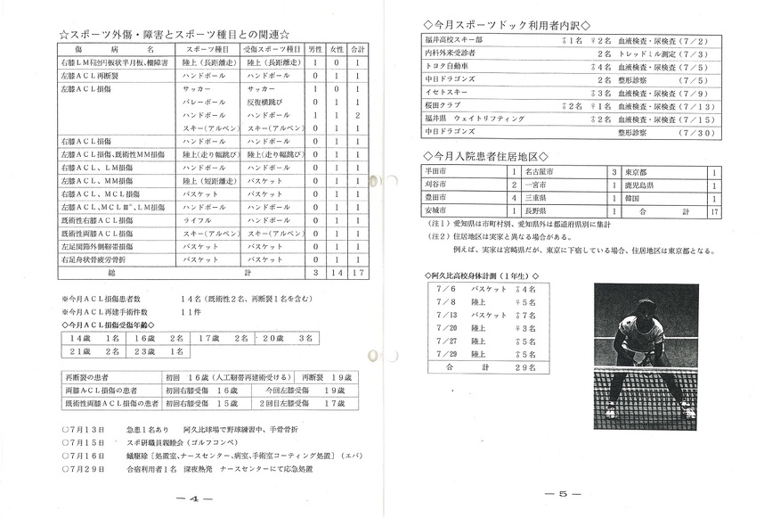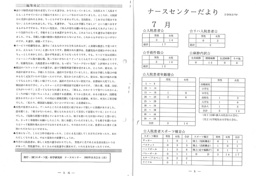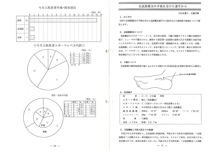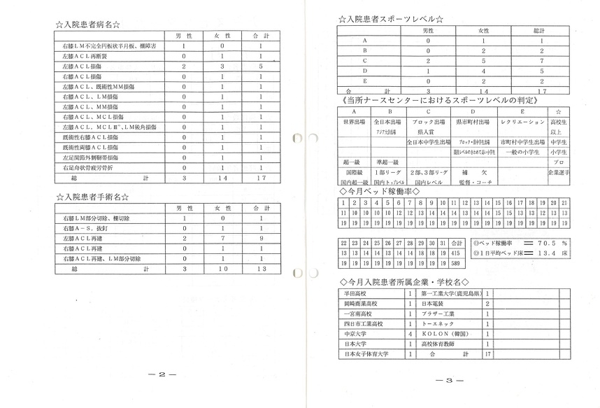 ● 今月の入院患者は、珍しく女性の選手ばかりでした。 男性が1名であとは全員女性という日があって、男性選手は、たくさんの女性選手に囲まれて、いたたまれなかったそうです。