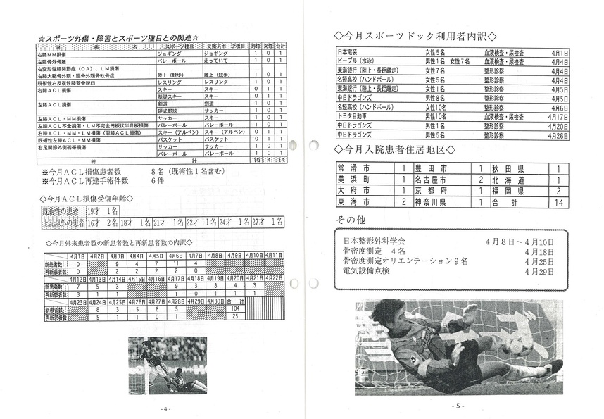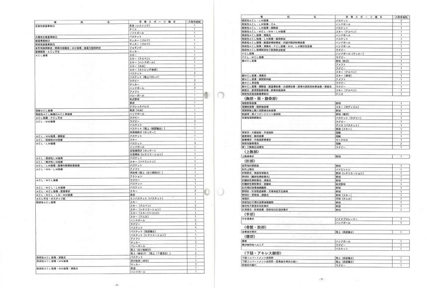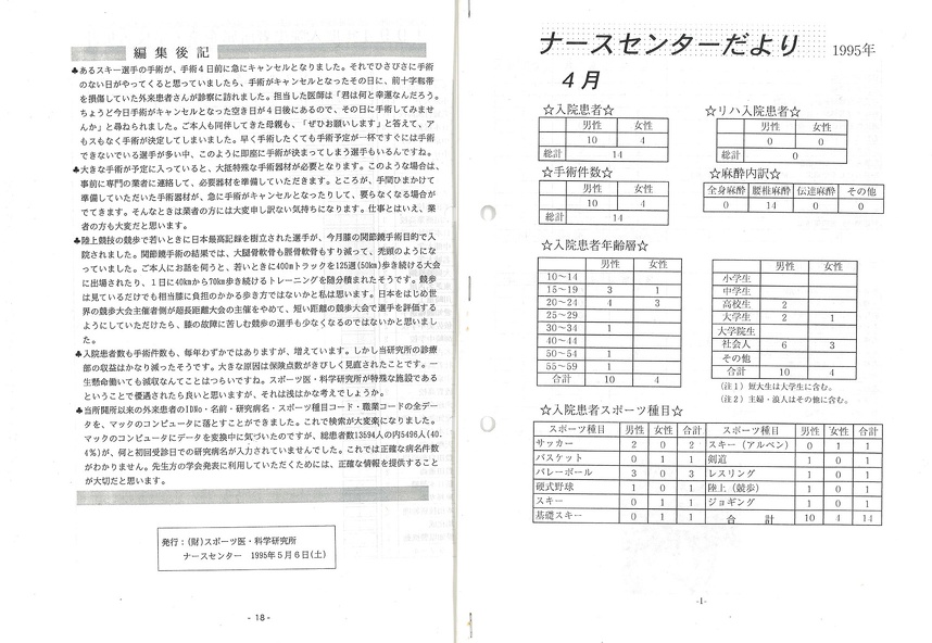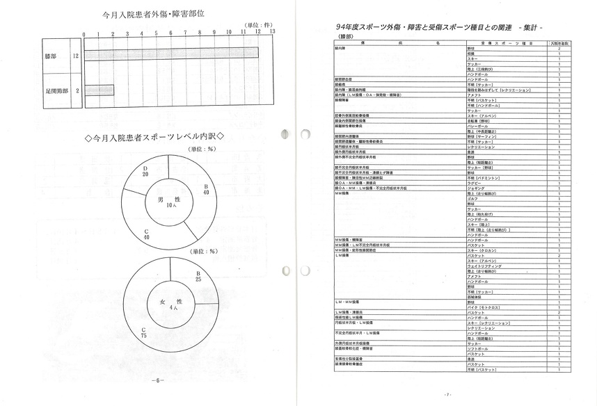 ● スポーツ医・科学研究所オープン以来の外来患者のID、名前、病名、スポーツ種目、職業の全データを、マックのパソコンに落とすことができました。これで検索が大変楽になりました。