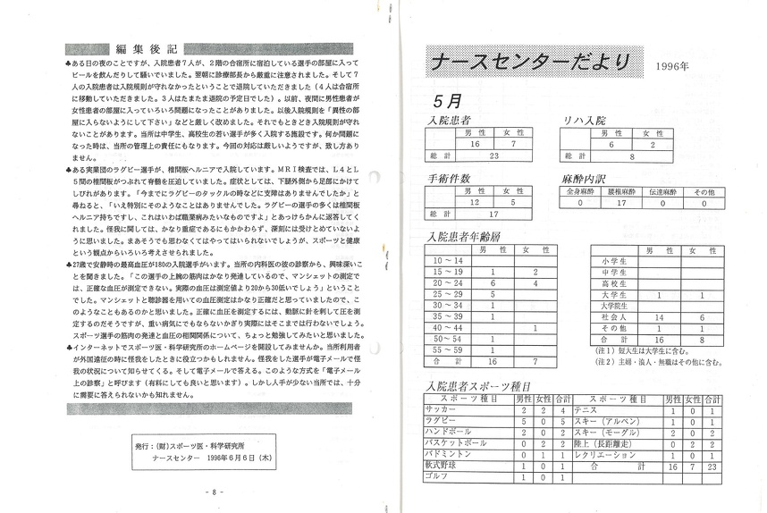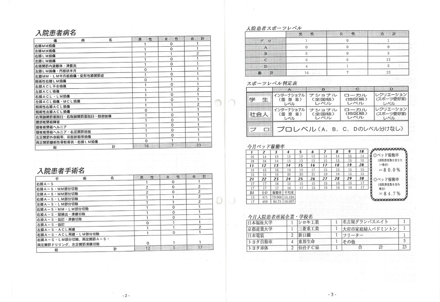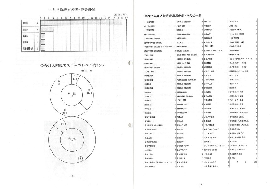 当診療部は中学生、高校生の若い選手が多く入院する施設です。