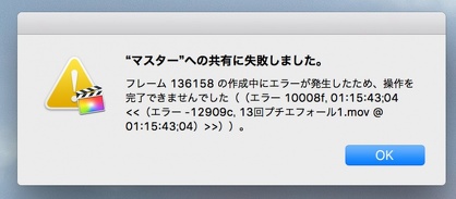FinalCut ProXでマスタ−の書き出しができない。共有に失敗する。